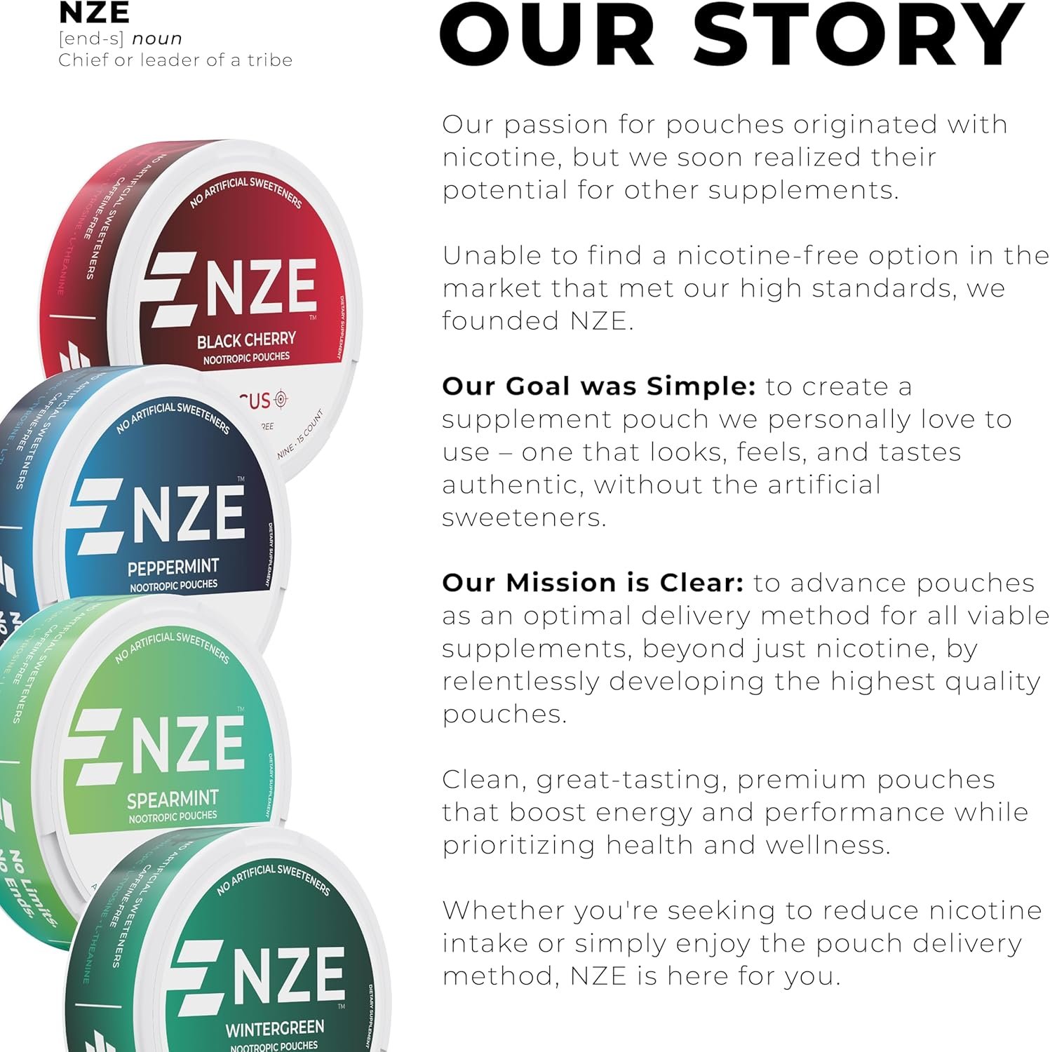 - Proudly Made in The USA – Manufactured and formulated to the strictest standards and utilizing the highest quality ingredients. Enjoy clean, great-tasting, premium pouches from NZE.
